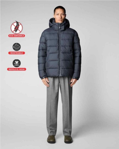 Chaqueta acolchada Boris con capucha hombre animal free GREY BLACK