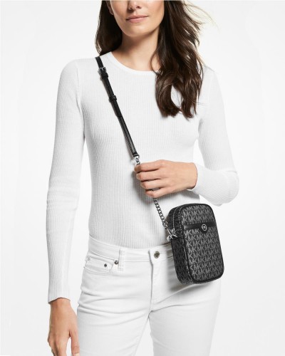 Bandolera pequena Michael Kors Logotipo Black Silver