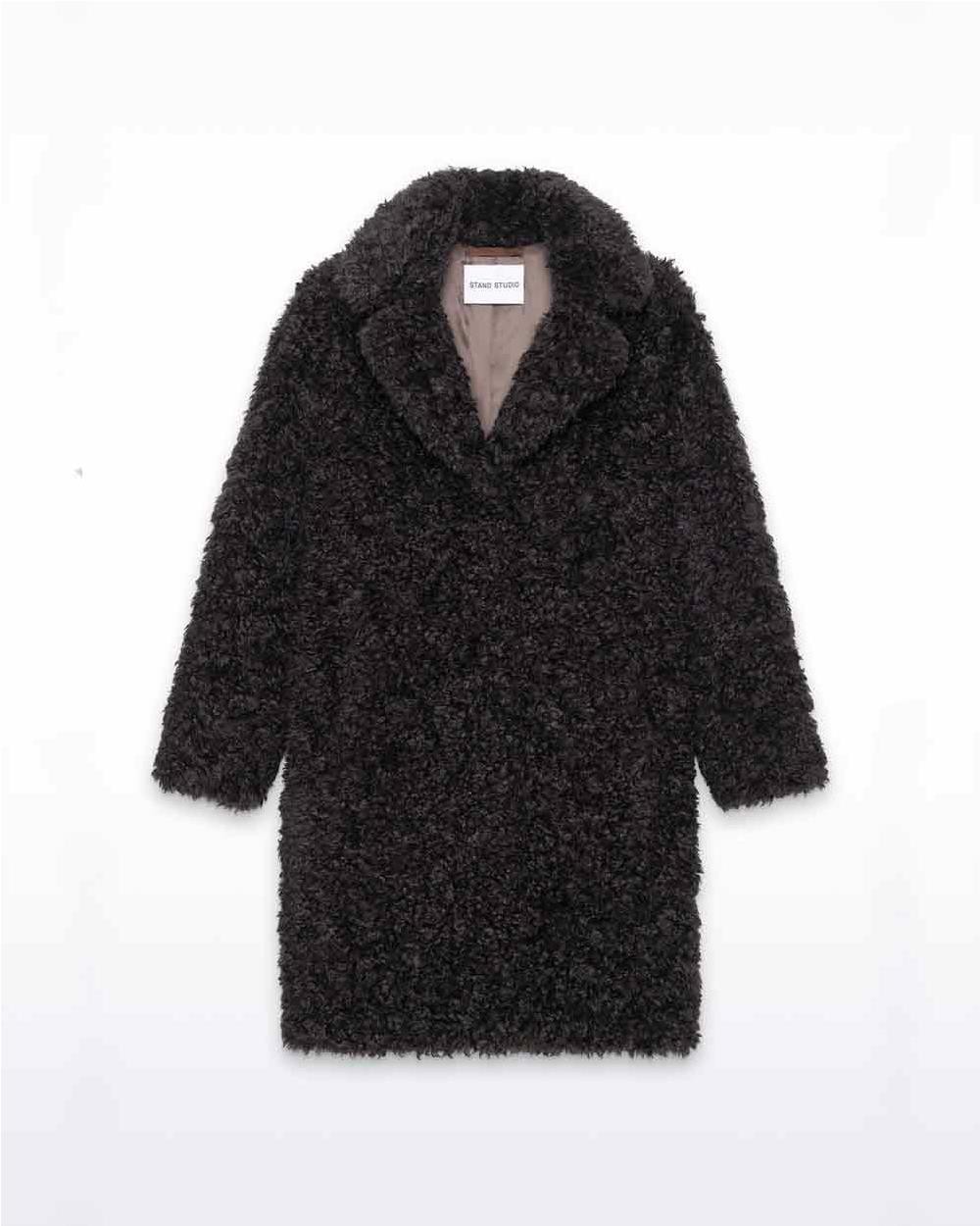 Abrigo Camille Cocoon Stand Studio es la capa exterior perfecta para elevar cualquier look. Diseñado con una silueta tipo capullo y hombros caídos, combina comodidad y sofisticación. Presenta cuello con solapas, cierre frontal oculto con botones a presión, bolsillos laterales y un práctico bolsillo interior con cremallera.