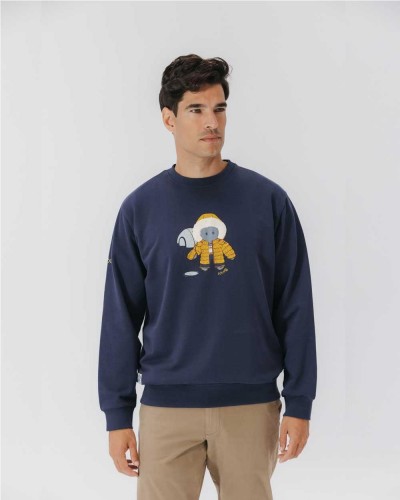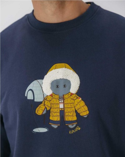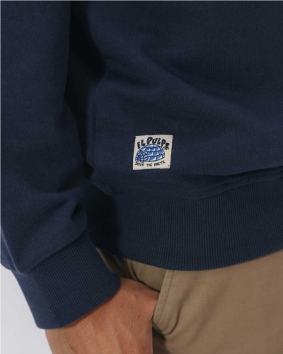 Sudadera elPulpo, tejido 100% algodón orgánico y teñida en un elegante color azul marino delavé. Su diseño exclusivo y su corte cómodo la convierten en una prenda versátil ideal para cualquier ocasión.