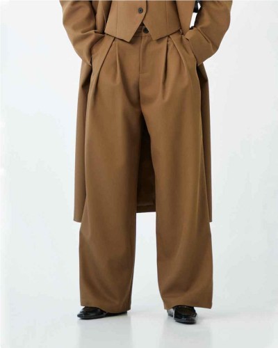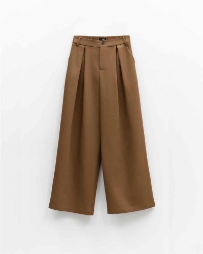 Pantalón marrón de pinzas con cintura elástica Mujer
