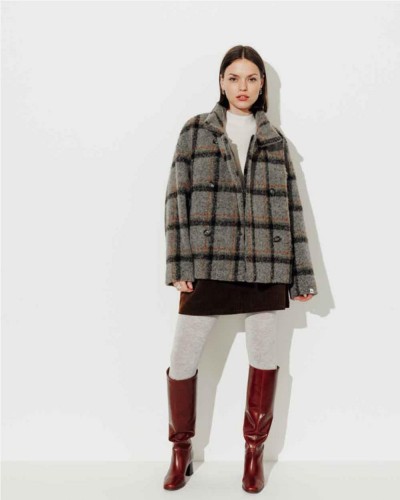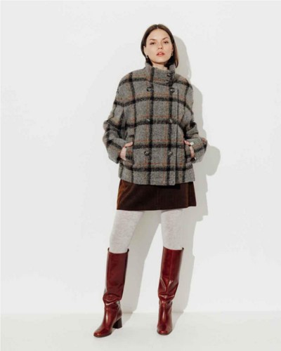 Abrigo corto Plumeria de Trench & Coat es la fusión perfecta entre estilo contemporáneo y confort térmico. Su corte oversize con efecto capullo lo convierte en una prenda moderna, fácil de llevar y perfecta para climas fríos.Confeccionado en un tejido bouclé de cuadros, este abrigo ofrece una textura visual atractiva y una suavidad envolvente. Las sisas caídas y el gran cuello alto abotonado refuerzan su carácter acogedor y protegen eficazmente del viento.