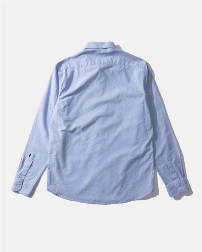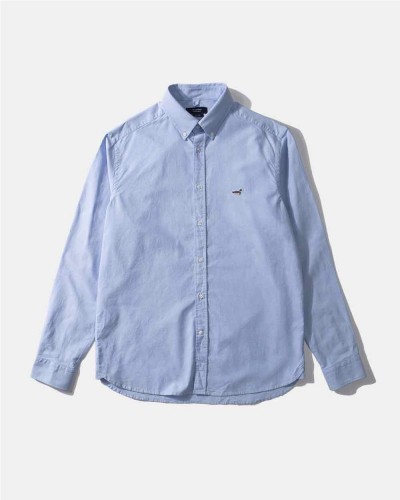 Camisa Edmmond Studios modelo icónico oxford tejiido algodón orgánico color azul claro y logotipo bordado en el pecho