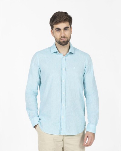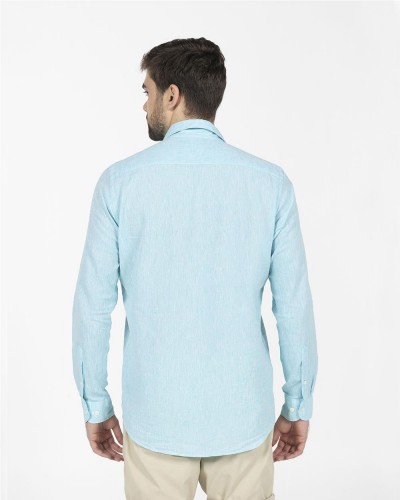 Camisa lino y algodón hombre azul turquesa TURQUESA