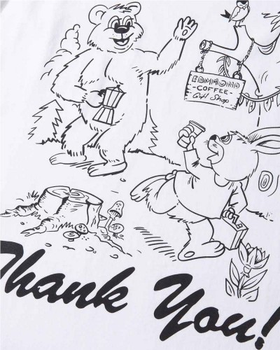 Camiseta Edmmond Studios modelo Thank You. Confeccionada en 100% algodón, presenta un atractivo estampado ilustrativo en la espalda y un fit regular que garantiza comodidad. Su color blanco plain la convierte en una prenda versátil, perfecta para cualquier ocasión