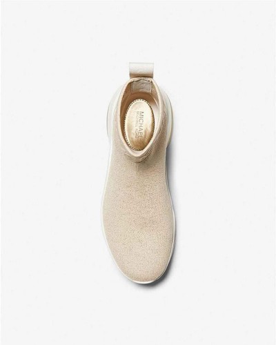 Botín Olympia Michael Kors modelo Extreme tejido punto elástico metalizado puntera almendrada ajuste ceñido calcetín bordado logotipo al tono tobillo, suela burbuja ofreciendo siendo aún mas cómoda y siendo el calzado perfecto de esta temporada