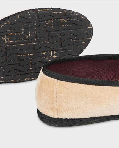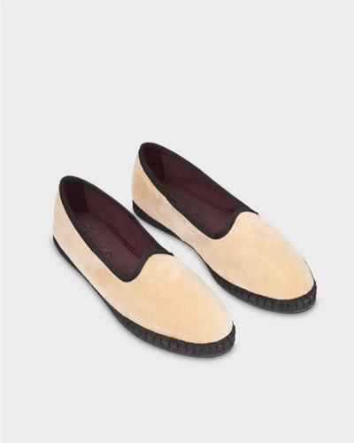 Slipper Flabelus modelo Sinai color beige brillante terciopelo interior 100% algodón reciclado suela neumático de bicicleta reciclado. Talla un poco menos en medios por ejemplo el 35,5 EU recomiendan una talla más del habitual