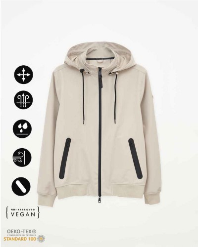 Bomber impermeable Tanta con capucha desmontable con cordón tejido poliéster totalmente repelente al agua al estar todas sus costuras selladas corte regular con bolsillos impermeables y ojales en las axilas. Pero a su vez logra un acabado elegante e ideal para el día a día. Disponible en varios colores