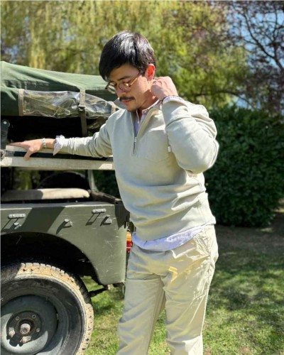 Pantalón ligero Edmmond Studios cintura elástica ajustable efecto deportivo color marrón claro en costura plano mezcla algodón 97% y 3% elastano