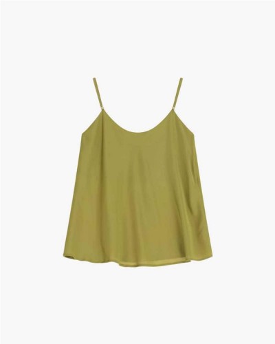 Blusa con tirantes finos ajustables y cuello redondo en color olio encarna la esencia de la elegancia urbana con su simplicidad sofisticada. Los tirantes finos aportan un toque delicado, mientras que el escote redondo crea una silueta refinada. Perfecta para combinar con una chaqueta o llevarla sola, esta prenda ofrece una versatilidad infinita, adaptándose a cualquier estilo urbano