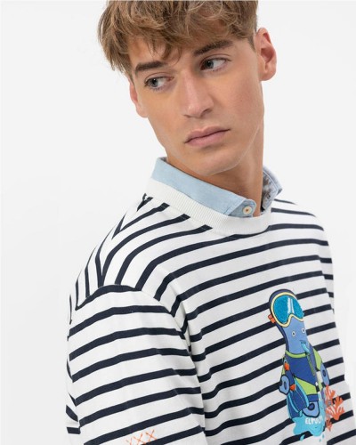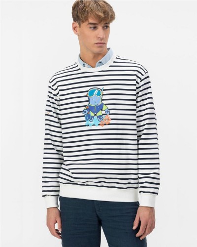 Sudadera de Rayas Estampado Snorkel hombre BLANCO