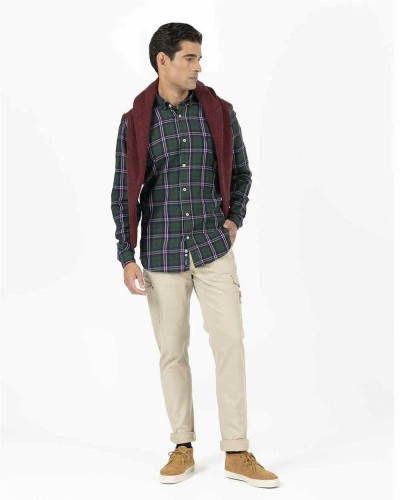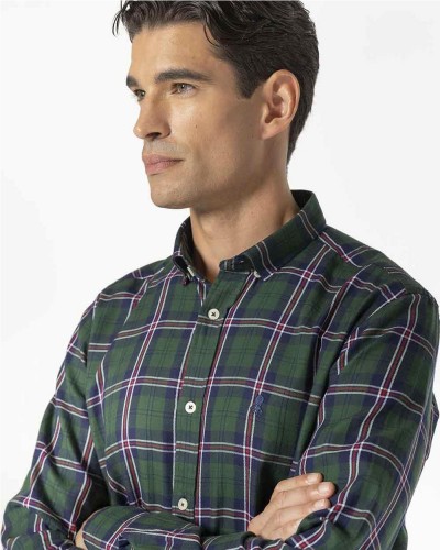 Camisa El Pulpo nuevo modelo Island estampado color verde botella tejido algodón cuello abotonado fit regular